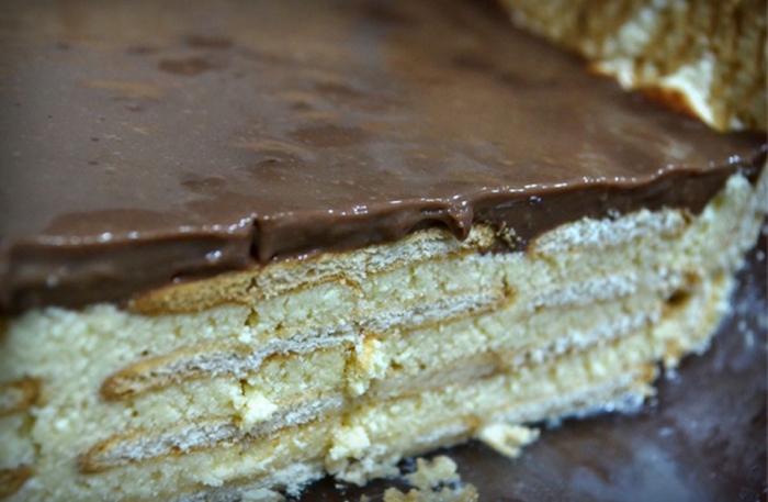 - Cubra a última camada de bolachas com o leite condensado sabor chocolate (comprado pronto ou a cobertura)